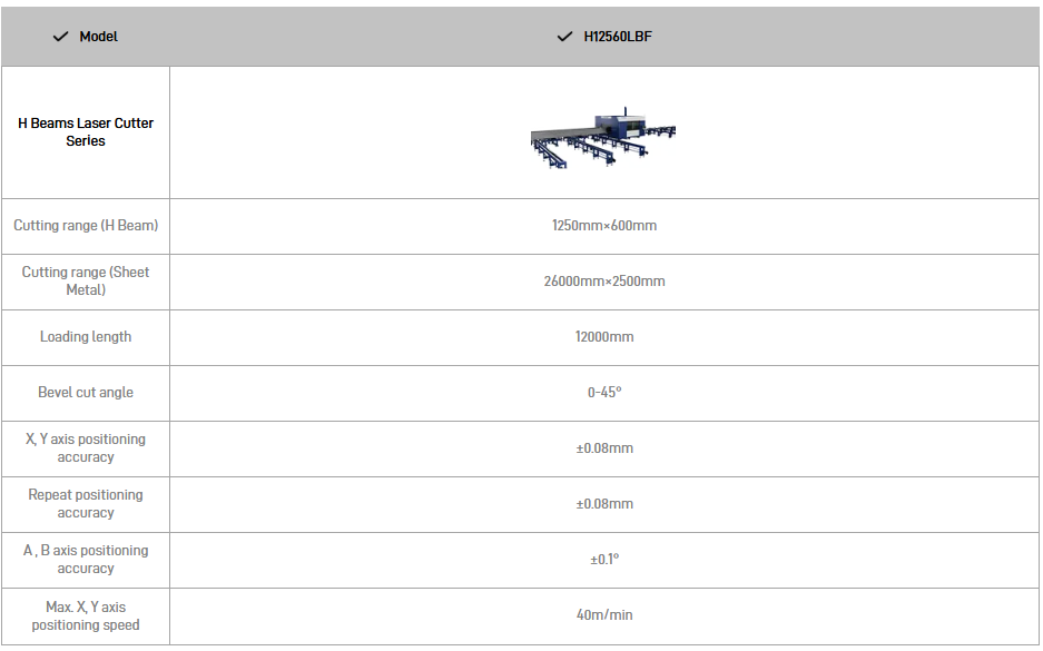 De HBF en LBF profiellasers zijn ontworpen voor het verwerken van grote constructieprofielen en kunnen materialen bewerken tot een maximale breedte van 1250 mm en een hoogte van 600 mm, waardoor ze bijzonder geschikt zijn voor zware staalconstructies en grote profieltoepassingen.