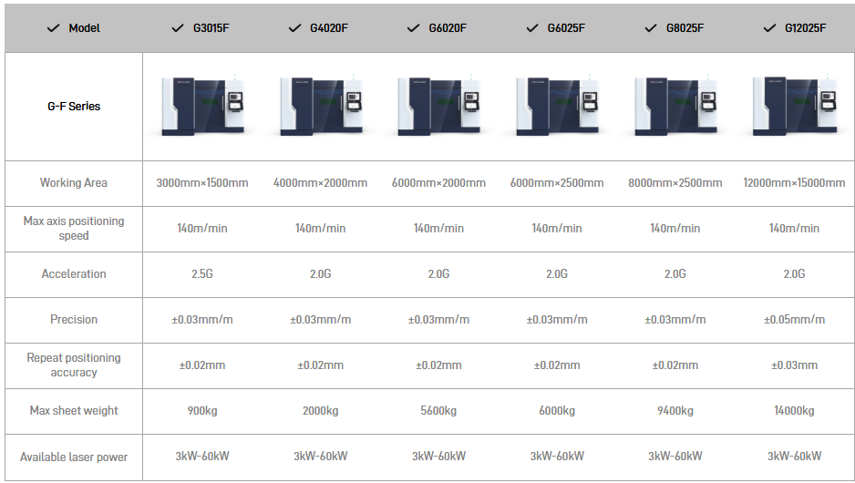 Dankzij een robuuste machineconstructie, een dynamisch bewegingssysteem en de geavanceerde Han’s SMC bus CNC besturing levert de GF Series uitstekende prestaties bij het verwerken van verschillende metalen platen. De machine is ontworpen om efficiënt te werken bij zowel dunne als middel dikke materialen en biedt daarmee een veelzijdige oplossing voor moderne metaalbewerking.